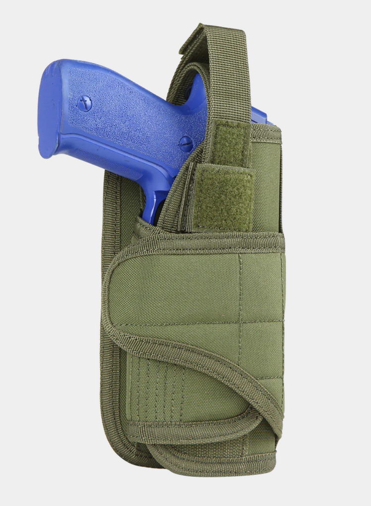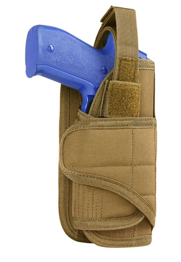 Condor OutdoorBe prepared for any mission by using the VT Holster from Condor Outdoor. This holster is designed to be compatible with any MOLLE platform, allowing you to customize the location of your firearm. Keep it on a vest, a harness, a belt, or any other element of your kit or uniform featuring MOLLE webbing. The holster is made to mount vertically, making it easier to get rapid access to your firearm. The wrap-around design of this Condor MOLLE holster makes it possible to snugly secure a variety of pistol types and sizes, including those with tactical lasers or flashlight mounts. This modular attachment is a versatile accessory that can be used for a variety of tasks and mission. Get the Condor VT Holster to carry your firearm safely and securely whenever the situation calls for it.