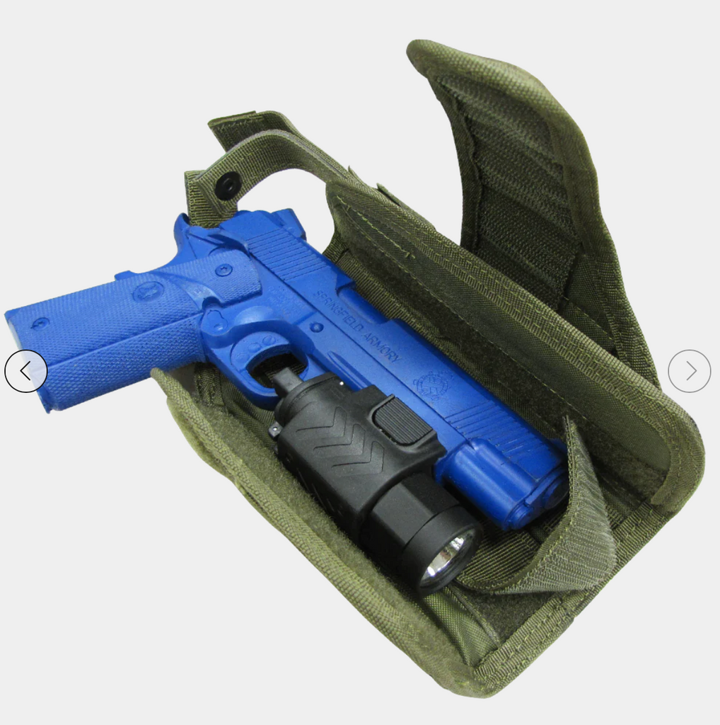 - Wrap-around design to fit pistols with laser or flashlight mount (Max: 5" Barrel)