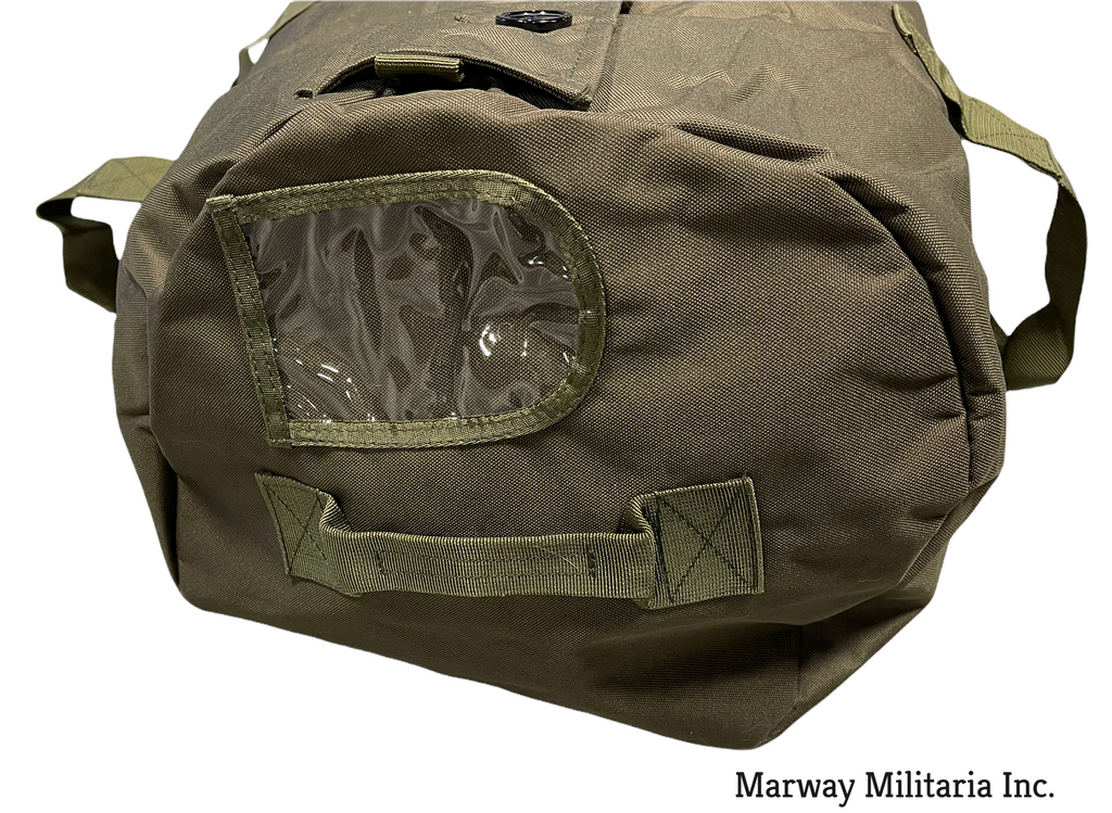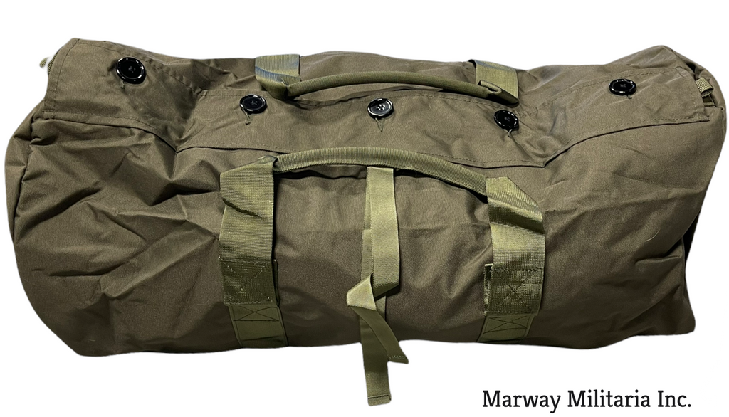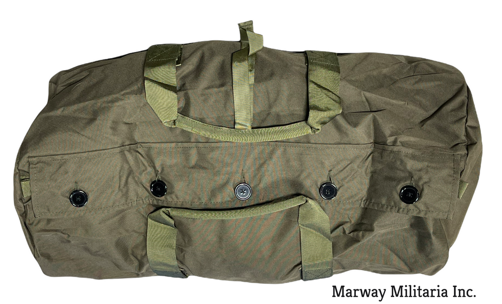 Choice of Green (Olive Drab) or Black. Nylon outer with lined pvc inner. With zipper and buttons, 2 handles. 30'' x 14'' x 14''. NEW