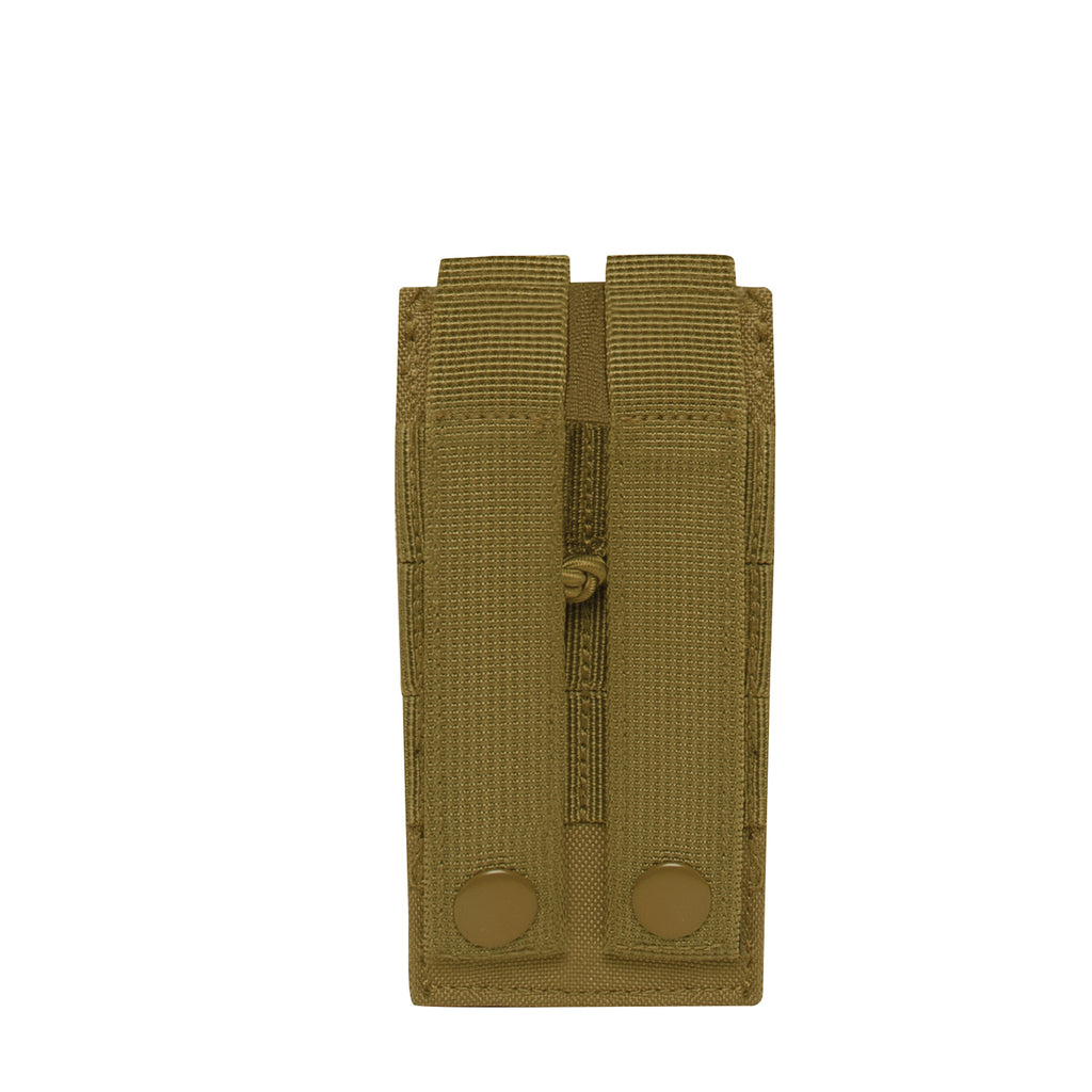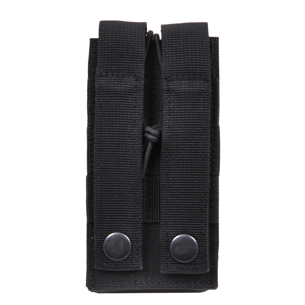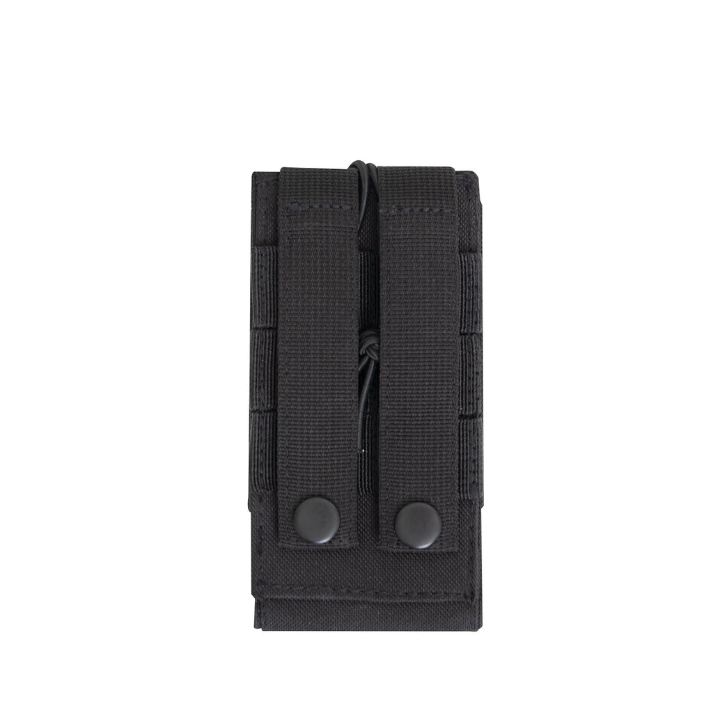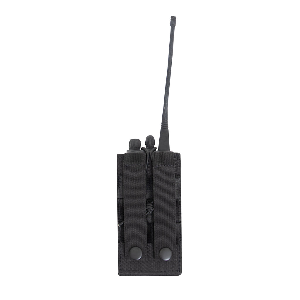 Rothco's versatile universal MOLLE Radio pouch is designed with elastic side panels to fit various radios properly. This tactical pouch perfect for soldiers, law enforcement, public safety, and more. The Tactical Radio Pouch features two 4” multi-purpose MOLLE straps (Can be used as a belt loop), elastic cord closure with a hook and loop fastener, and a 4 ½” X 2” loop field on the front. Measuring 5" X 2 ¾” X 1", this MOLLE radio carrier is the perfect addition to your tactical gear collection.
