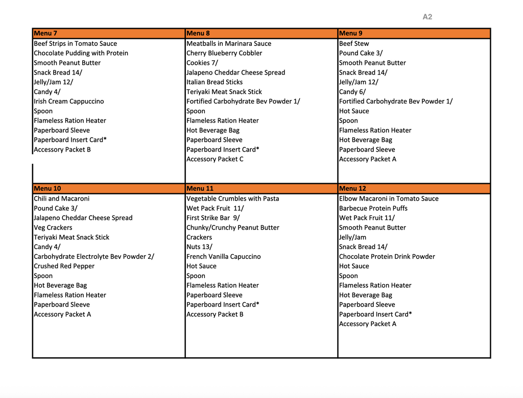 USGI MRE's Meal Ready to Eat. Comes with Heater, and contents (see attached pictures).