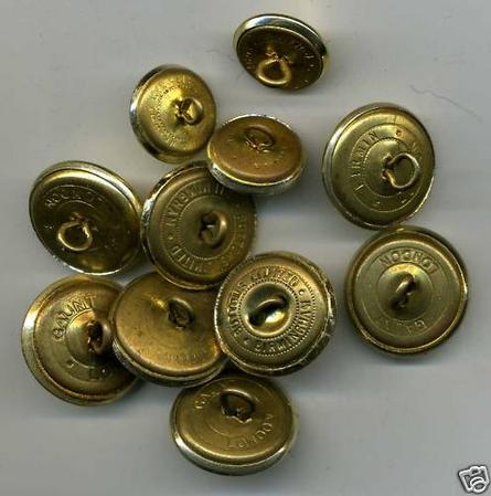 Collection of 11, British & New Zealand Army Uniform Buttons Anodized Aluminum. All with loops on the back. Sizes varies from 25mm wide, 20mm wide and 18mm wide.