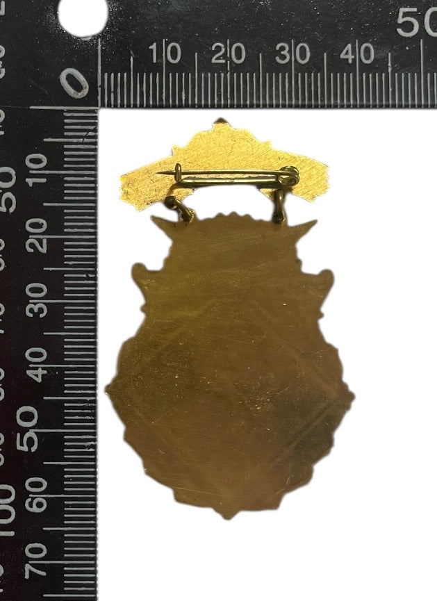 Gold plated brass medallion, pin fastener.