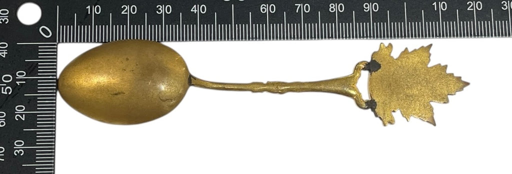 Aged gilt brass finish spoon sold to soldiers in the kit shop at Camp Hughes Manitoba in 1916.