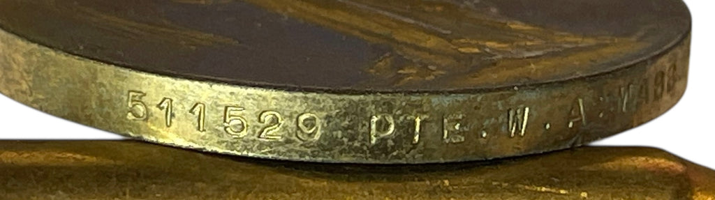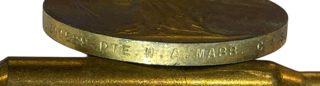 Genuine full size medal with period correct ribbon. Medal shows tarnishing. 511529 PTE W A MABB CASC