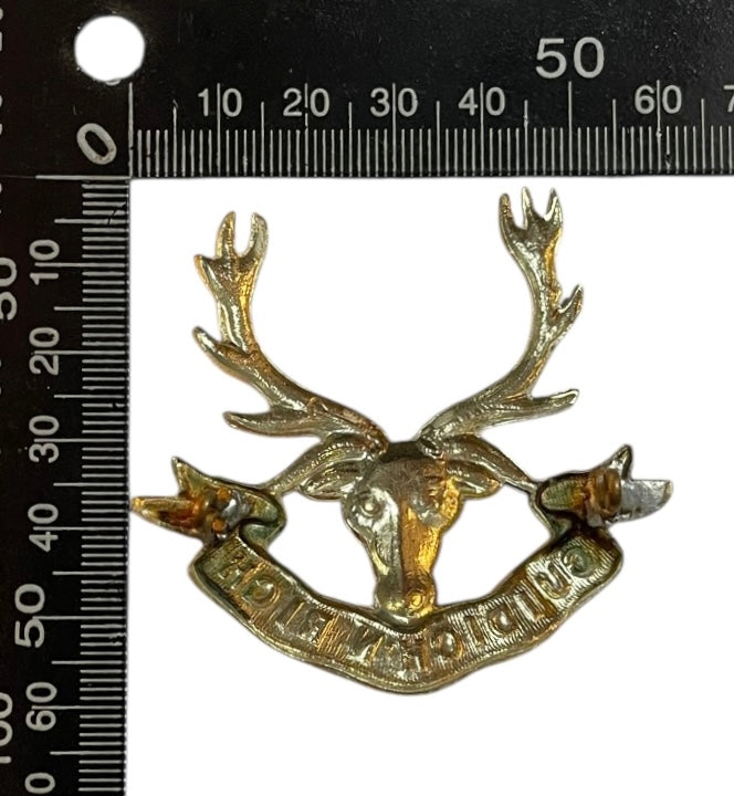 White metal, repaired lug fasteners. Dots on each side of scroll.
