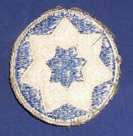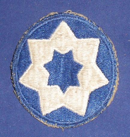 7th Serv. Cmd. US Military Shoulder Patch. 2 1/2" x 2 1/2" wide. Nice older issue. Tan edge.