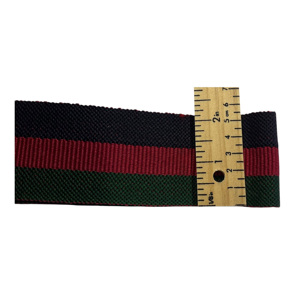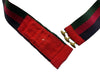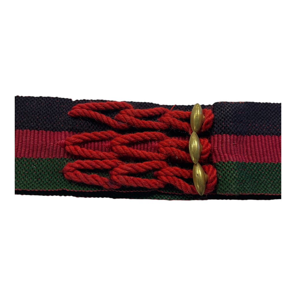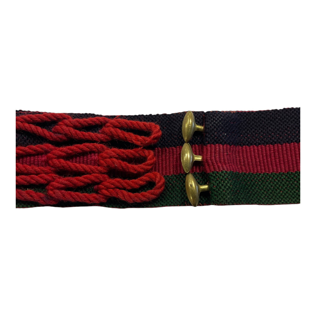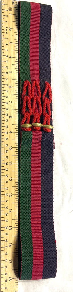 A very nice woven belt in the colours of the Black Watch. The brass metal ovals that slip into the loops. Measures approximately 36" wide. Very nice.