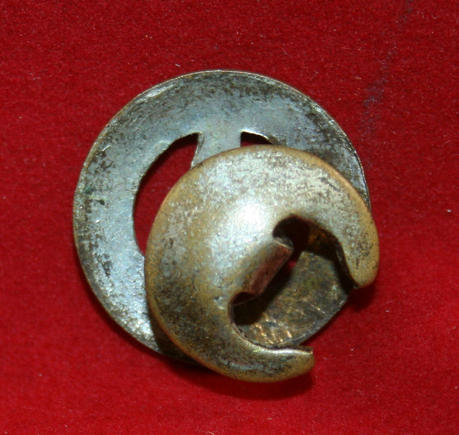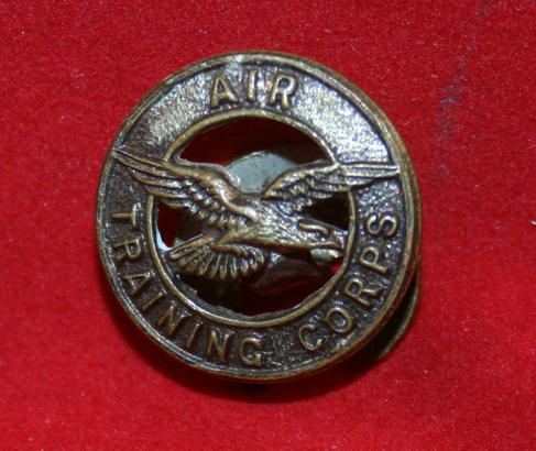 British, AIR TRAINING CORPS, members pin. Light gold coated bronze, with bronze showing due to wear round pin with words, AIR TRAINING CORPS, on outside banner and a Flying Eagle centre. 19mm across. Button hole fastener. Nicely done.