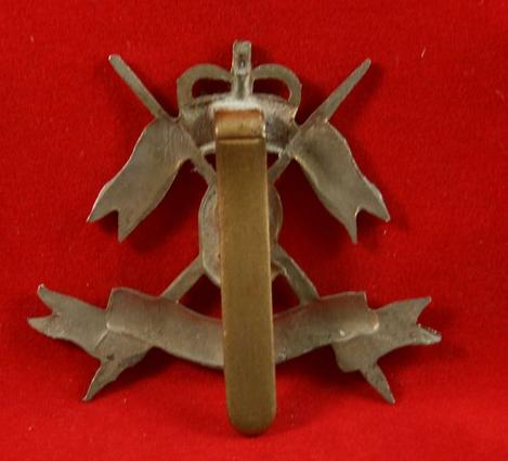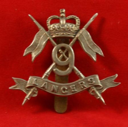 British Army: 9th Lancers Cap Badge. Queens Crown, post 1953 issue. Slider fastener. White metal.