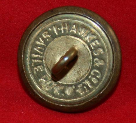 British Army: East Kent Mounted Rifles Uniform Button. Darkened brass. With loop on the back. 25mm wide. HAWKES & CO 1 SAVILE ROW makers name.