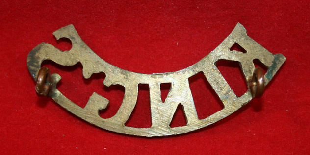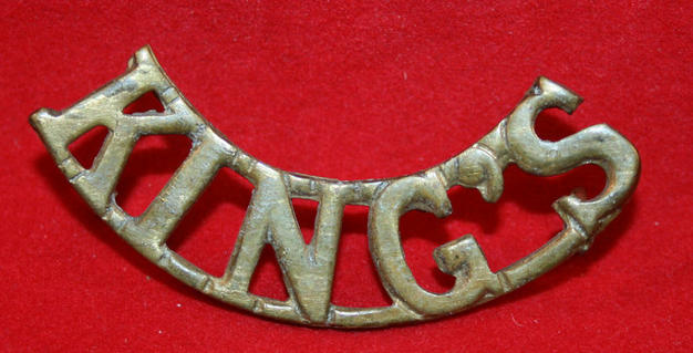 King's Own Regiment Shoulder Title. Brass metal. Lug fasteners.
