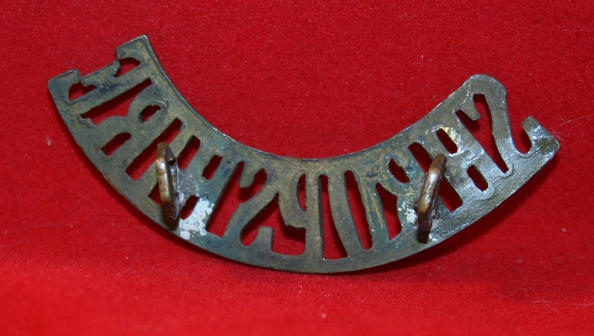 British Army: SHROPSHIRE Shoulder Title Badge. Brass metal. Lug fasteners.