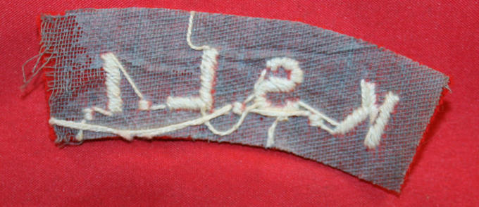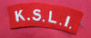 British:K.S.L. I (King's Shropshire Light Infantry) Cloth Shoulder Title Flash. Embroidered. White letters on red.
