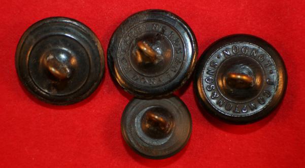 British Police Button Lot. Lot of 4. All black bakelite material. All Kings Crown. 3 - Metropolitan Police, (London) two - 25mm size, maker - one - J Compton & Sons London and other Reynolds & Co. London and one - 20mm size, no maker. 1 - 25mm size, Manchester Police, no maker, Globe centre rather than crown.