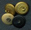 Collection of 4, Royal Canadian Navy Uniform Buttons. Each with the loop on the back. Each maker stamped. Each 25mm wide. 2 brass, different variations, 2 plastic, black & white.
