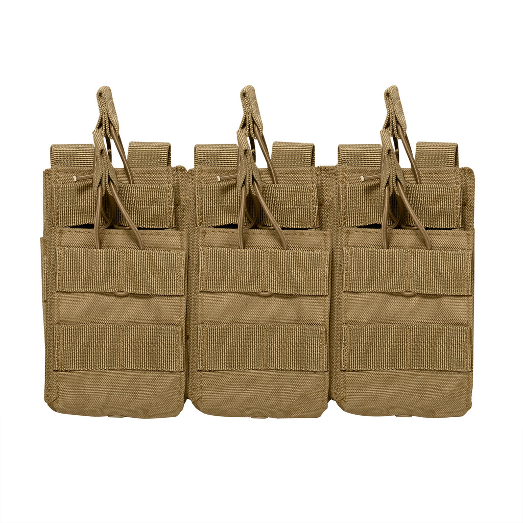 Rothco’s MOLLE Open Top Six Rifle Mag Pouch offers unprecedented ammo capacity in an open top design for easy reloading at the range. The MOLLE pouch secures your mags with elastic bands with easy-grip pull tabs. The rifle mag pouches are designed to fit most popular rifle mags including AK-47 mags, M-16 mags, and more. This MOLLE compatible mag pouch is compatible with tactical vests, assault packs, & more. The MOLLE magazine pouch is made from highly durable materials for years of reliable use and measures 9.5 inches X 6.5 inches X 2 inches.