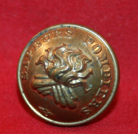 France: Sapeurs Pompiers Uniform Button - Firefighting - Domed. Brass metal. Loop on the back. Maker HTW & M PARIS. 21mm wide.