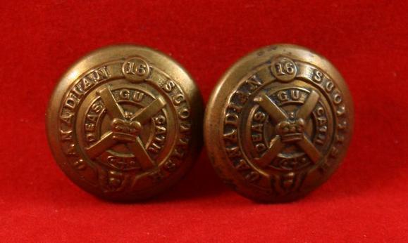 Lot of 2, WW1 16th Canadian Scottish Uniform Buttons. Brass metal. All with loops on the back. 19mm wide. Not maker stamped.