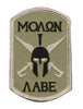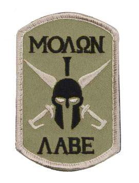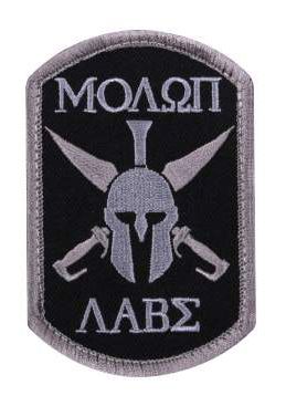 Show off your inner Spartan with the Molon Labe Patch; featuring an embroidered "Molon Labe" text and helmet and sword image.