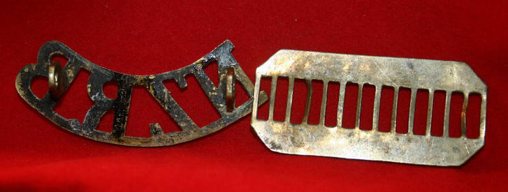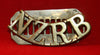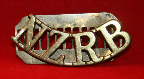 New Zealand: Shoulder Title: NZRB. New Zealand Rifle Brigade. Brass metal with lug fasteners, brass backing plate. Maker stamped GAUNT LONDON on the back.