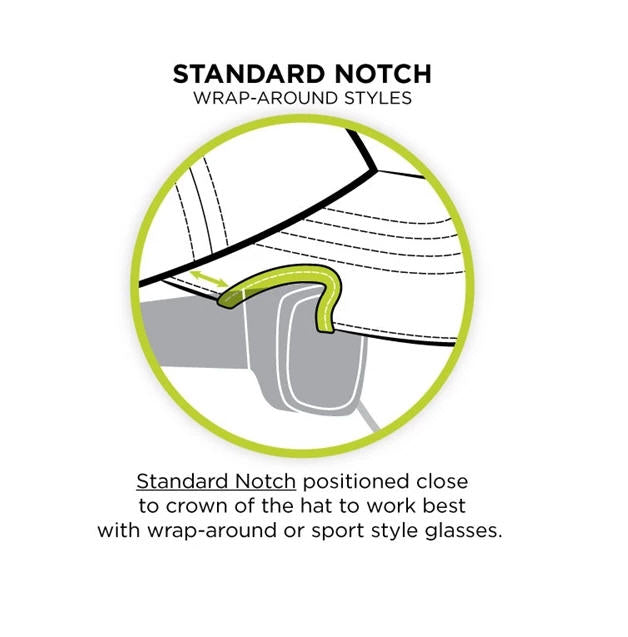 Our patented notches eliminate the interference between your hat & sunglasses, providing the most secure, comfortable fit possible.