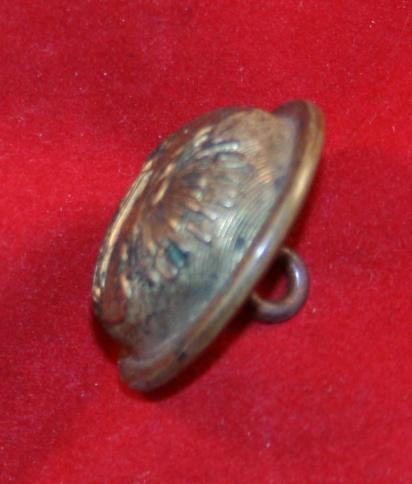 OLD OHIO State Brass Uniform Button - Large Size. Brass metal. Loop on the back. Maker WATERBURY BUTTON CO. 25mm wide. Shank appears replaced, or reinforced.