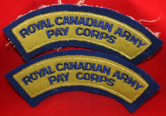 Pair: Royal Canadian Army Pay Corps Cloth Shoulder Title