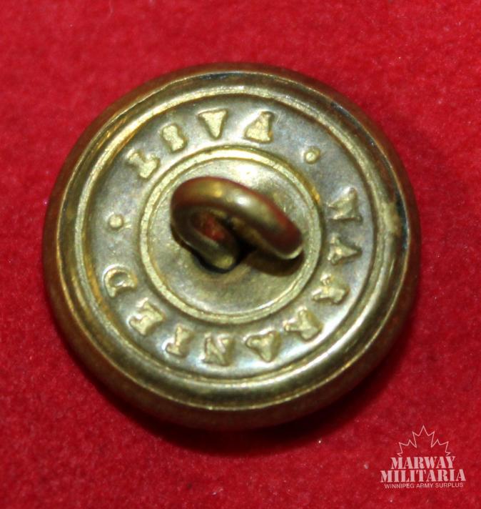 Brass metal, loop on the back. Maker Stamped Warranted. 16mm wide.