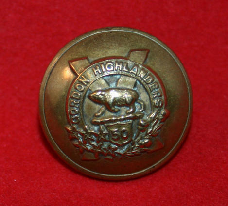 Pre WW1 50th Regiment Uniform Button (medium size). Gordon Highlanders. 20mm wide, with loop on the back. Brass metal. Maker stamped MOORE TAGGART & CO GLASGOW. Smylie refers F50a, circa 1913-1920.