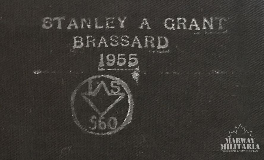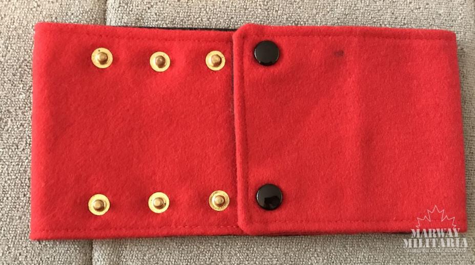 Black lettering embroidered on Red. Snap fasteners. Adjustable. Maker and date stamped. 1955