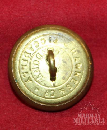 Circa 1893-1901. Brass metal, loop on the back. HAWKES & CO PICCADILLY LONDON. 21mm wide.
