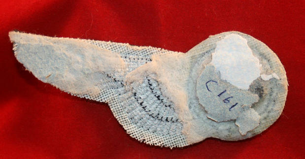 S.A.A.F. South African Air Force SAAF Radio Operator (Markonis) Wing Badge (Variation). Glue and paper on the back. Reference number C161 written in ink on paper.