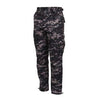 RothcoRothco's Military Digital Camouflage BDU Pants are made with comfortable, durable poly/cotton twill with a reinforced seat & knees, designed for military and public safety personnel for a long lasting wear. Rothco’s BDU Uniform pants include 6 utility pockets (2 button down back pockets, 2 front slash pockets and 2 cargo pockets). Additional features include an adjustable waist tabs for a secure fit, button fly, drawstring bottoms.