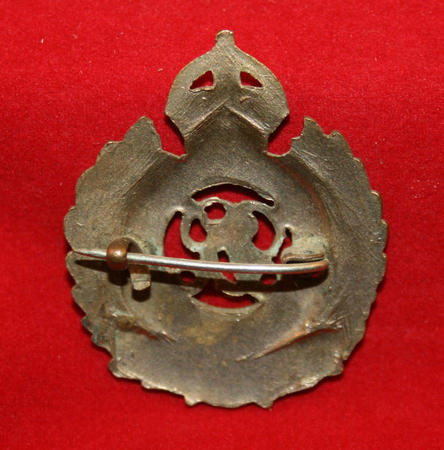 British, ROYAL ENGINEER'S, Geo V issue, Sweetheart Pin. Brass metal, with colored enamel in design. Pin back fastener. 30mm x 36mm.