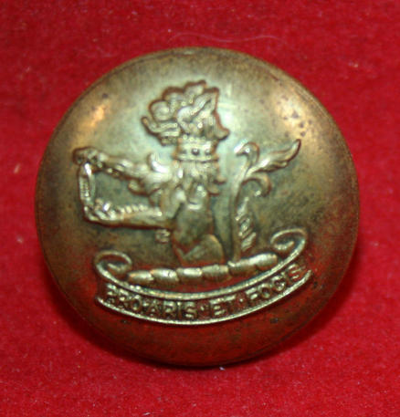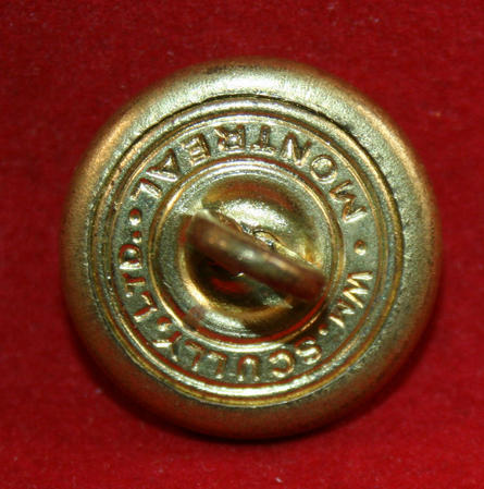 WW2, Lorne Scots (Peel, Dufferin & Halton) Regiment Uniform Button (medium size). 20mm wide, with loop on the back. Brass. Maker stamped W M SCULLY LTD MONTREAL. Smylie refers F20b, 1936-1968 circa.