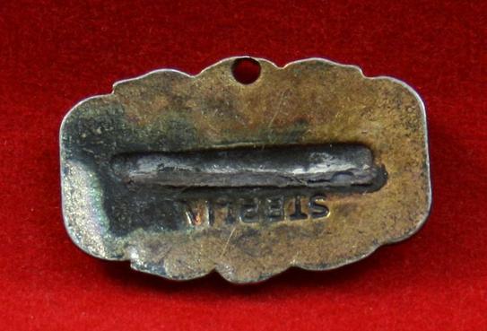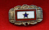 WW2 USA, Person in the Forces, crest pin. Small dull gold coated, STERLING, marked, floral rectangle pin. 17mm x 11mm. With a red and white rectangle design on it with single blue Star in the centre, indicating one person in the Services. Looks to have been mounted with a pin fastener, which has been removed. Very nicely made.
