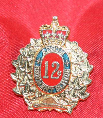 12th Regt Blinde Lapel Pin. Modern made. 26mm long. Pin back clutch type fastener.