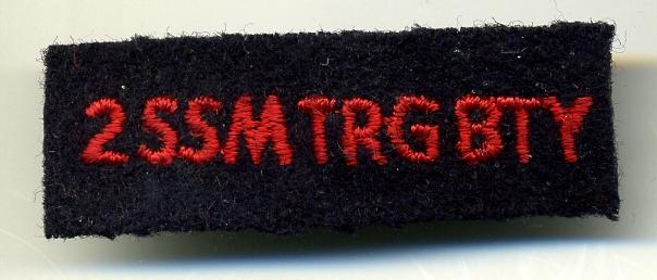 2 SSM TRG BTY RCA Title (cut down). Not worn condition. Red on blue. Glue residue on the back.