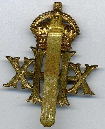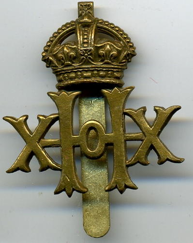 20th Hussars Cap Badge. Brass badge, slider fastener. KK refers 793.