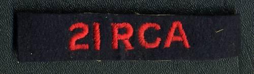 21 RCA Royal Canadian Artillery Cloth Shoulder Flash