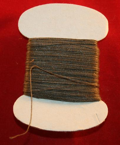 50 Yards of Post WW2, Korea Period Sewing Thread. New, not used. Each spool has 50 yards of thread, wound on cardboard. Khaki green.