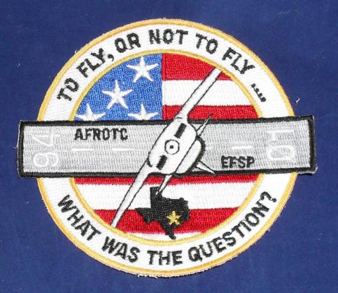 American 94-0l AFROTC EFSP Patch. "To Fly, Or Not To Fly, What Was The Question?". Embroidered. New condition. 4" x 3 1/2".
