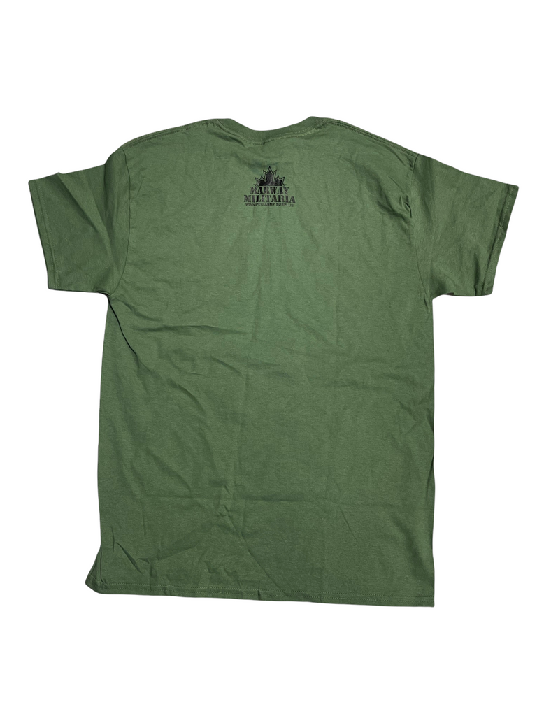Olive Drab Green, with word ARMY across front. Marway Logo on back yoke. Limited sizes and quantity. Gilden Ultra Cotton, 100% Cotton.