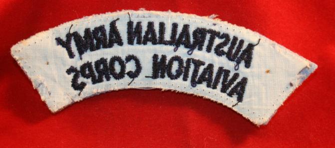 Australian: Australian Army Aviation Corps Cloth Shoulder Title. Worn Condition, thread holes along edge. Embroidered.