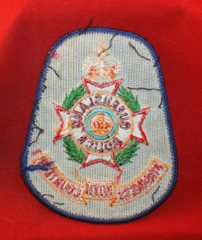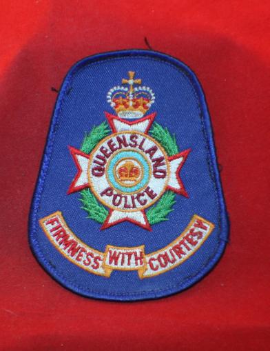 Australia: Queensland Police Cloth Shoulder Flash. - smaller size. 9.5 cm tall. Embroidered. Used condition, no rips or tears.
