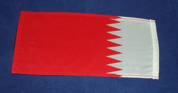 Bahrain Flag. Nylon, printed design. Approx. 6" x 3". In very good condition. Vintage - not newly made.