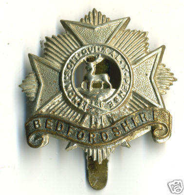 British Army Bedfordshire Regiment Cap Badge. White metal with brass overlay. KK610. Slider on reverse.