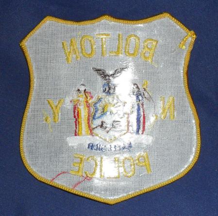 Bolton New York Police Shoulder Patch. Embroidered. New Condition.