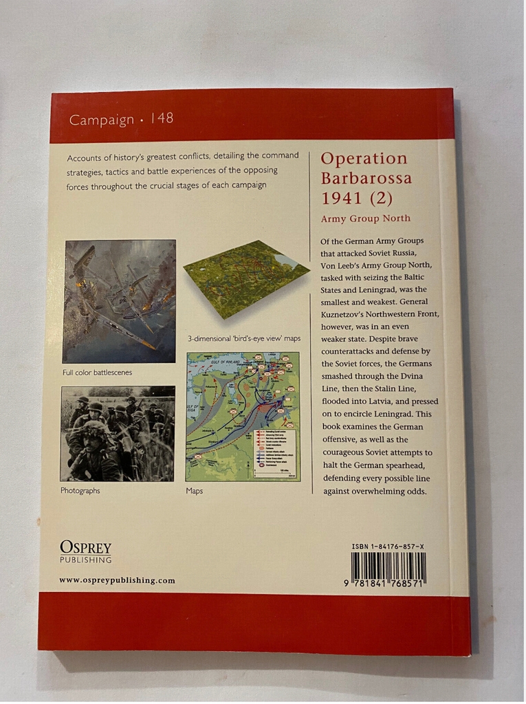 Osprey's second title examining the events of Operation Barbarossa. Of the German Army Groups that attacked Soviet Russia, Von Leeb's Army Group North, tasked with seizing the Baltic States and Leningrad, was the smallest and weakest. General Kuznetzov's Northwestern Front, however, was in an even weaker state. Despite brave counterattacks and defense by the Soviet forces, the Germans smashed through the Dvina Line, then the Stalin Line, flooded into Latvia and pressed on to encircle Leningrad. This book examines the German offensive and also the courageous Soviet attempts to halt the German spearhead, defending every possible line against overwhelming odds.